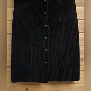 Black V Neck Full Button Front 90’s Sleeveless Thick Corduroy Mini Dress