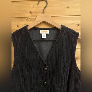 Vintage Talbots Small Black Thick Corduroy Button Front Mini Dress Goth Academia