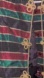 Elegant blazer w/ shoulder pads featuring bold stripes in black, green, and red. Adorned with gold trim and decorative closures. Perfect for a polished look.