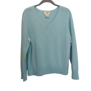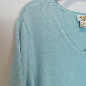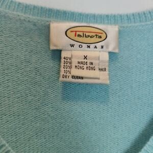 Vintage Talbots Sz 1X Blue Elbow Patch V Neck Sweater Merino Angora Cashmere