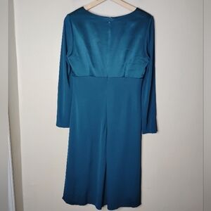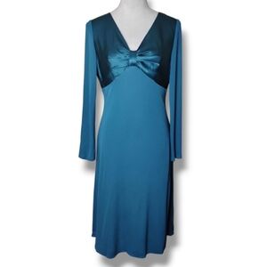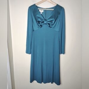 Vintage Talbots Teal Bow-Bust Midi Dress | Silk Bodice | Long Sleeve | 6P