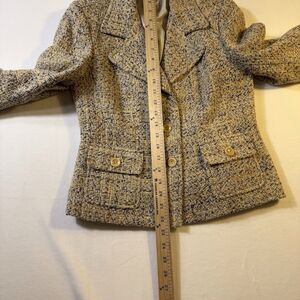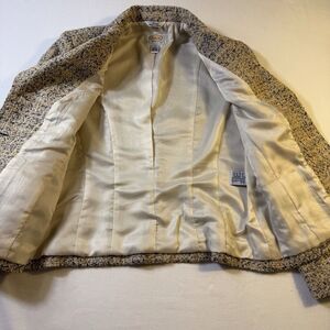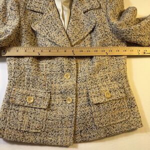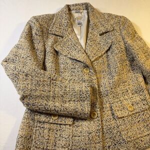 This Vintage Talbots Tweed Blazer Jacket in size 2 features a classic and preppy style, perfect for workwear or business occasions. Made from a cotton blend tweed fabric with a polyester lining.