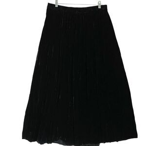 Vintage Talbots Velvet Midi Skirt L Black Pull On Pleated Witchy Whimsigoth Goth