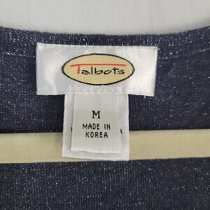 Vintage Talbots V-neck 3/4 Sleeve Shimmer Cardigan size M navy silver 90s office