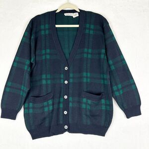 Vintage Talbots Watch Plaid Wool Cardigan Sweater Size Medium Preppy Timeless