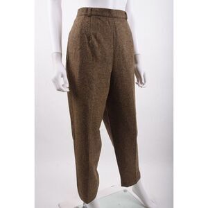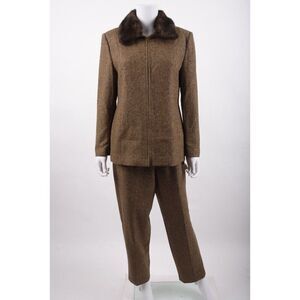Vintage Talbots Womans Pant Suit Size 10-12 Petite Brown Herringbone Wool Blend