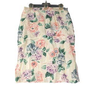 Vintage Talbots Womens 8 Pure Silk Ivory Pastel Floral Skirt Suit Set
