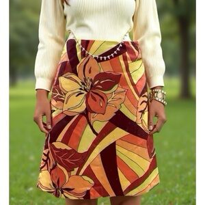 Vintage Talbots Women's A Line Skirt Hippie Chic Floral 100% Cotton Sz 10 Medium