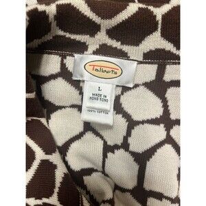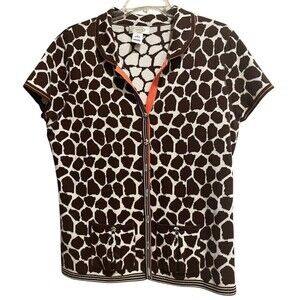 Vintage Talbots Women’s Giraffe Print Orange Trim Cardigan Cotton Cute Pockets L