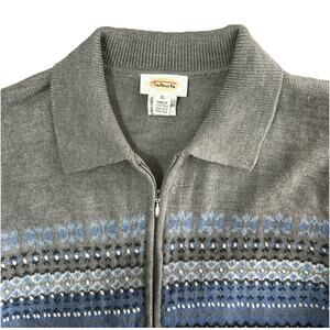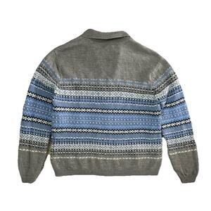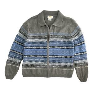 Vintage Talbots Women’s Gray Blue Fair Isle Wool Angora Knit Sweater Full Zip XL
