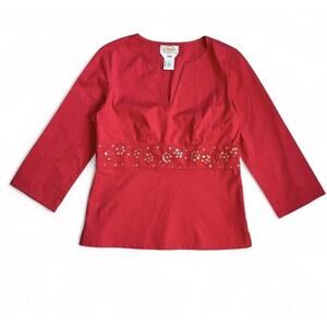 Vintage Talbots Women’s Pink Sequin V-Neck Blouse With Sequin Details Size S