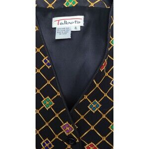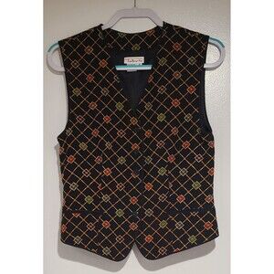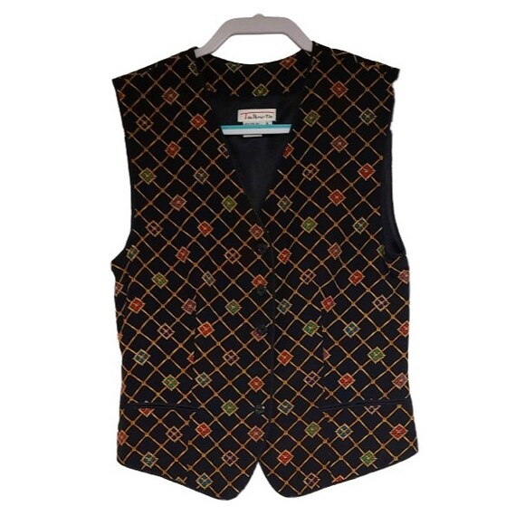 Vintage Talbots Womens Silk Plaid Medallion Suit Vest Navy Blue Green Red Size 4