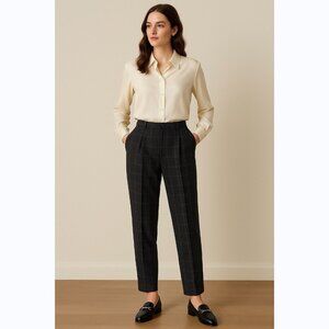Vintage Talbots Women’s Size 10 Wool Blend Plaid Pants Black Gray Check Pleated