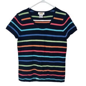 Vintage Talbots Women’s Striped Knit Short Sleeve Top Size M Cotton Round Neck