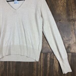 Vintage Talbots Womens Sweater Metallic Gold Shimmer V Neck Long Sleeve Small