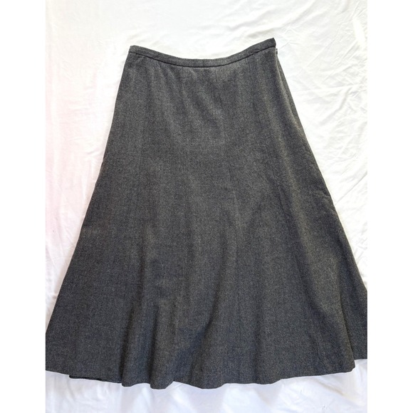 Keywords: Talbots skirt, wool blend, A line, midi length, dark gray, size 6, stretch fabric, business casual, workwear, classic, tailored, fall fashion, winter skirt, Italian made, dark academia, preppy, minimalist, retro, librarian