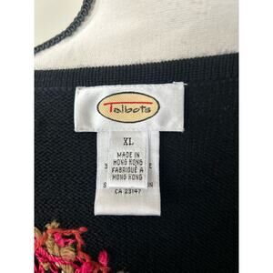 Vintage Talbots Wool Blend Black Pink Embroidered Paisley Zip Cardigan