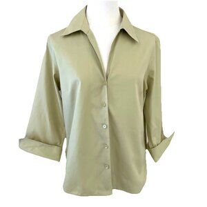 Vintage Talbots Wrinkle Resistant Button Down Blouse Size 8 Sage Green Luxury