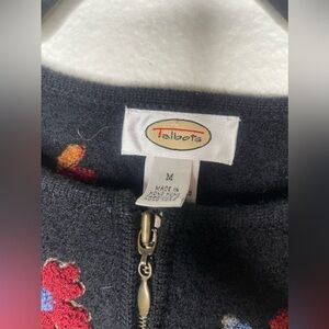 Vintage Talbots black floral embroidered , wool floral Fall floral cardigan, zipper front cardigan, black floral sweater M