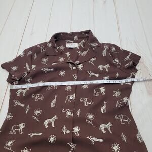 Vintage Talbots button midi shirt dress jungle zebra lion elephant safari