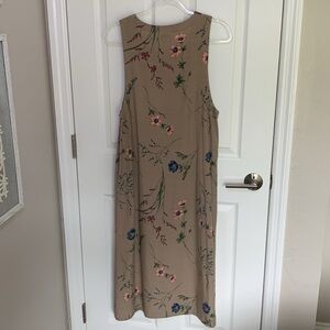 Vintage Talbots maxi dress- tan with floral print pockets Tencel size 8p