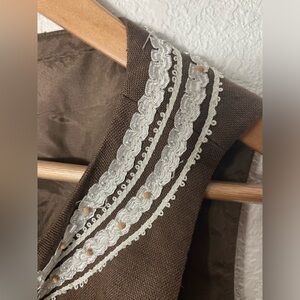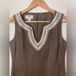 Vintage Talbots petites brown linen bodycon sleeveless midi dress size 2 beading
