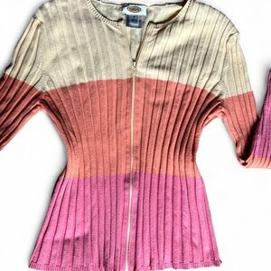 Vintage Talbots pink, yellow, orange, striped and ribbed, full-zip sweater