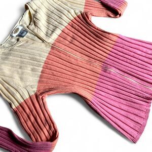 Y2K Rare and unique Vintage Talbots adorable pink, butter yellow, and light orange, striped/color block, ribbed, full-zip, lightweight, cotton blend sweater. Size M. Good-great condition.