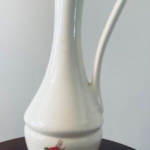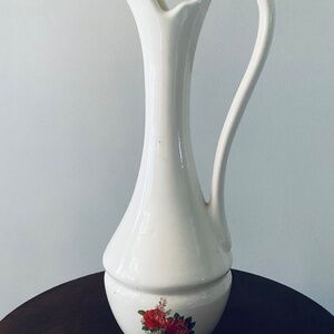 Vintage Tall Ceramic Pitcher Vase with Floral Design, Tall vintage floral Vase