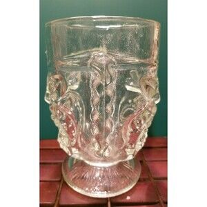 Vintage Tall Clear Glass Two Faced Happy/Angry Tiki Mug Goblet