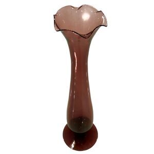 Vintage Tall Delicate Fluted Dark Mauve Glass Vase