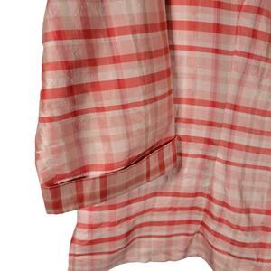 Vintage Tall Girl Silk Blouse 18 Red White Plaid Boxy Top 3/4 Sleeve