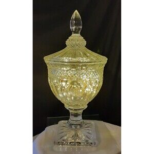 Vintage Tall Lidded Lead Crystal Pedestal Candy Dish w/ Cordless Citrine Lights