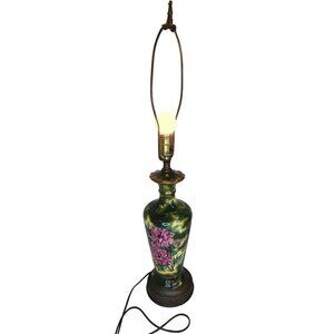 Vintage Tall Table Lamp With Brass Base Hand-Painted Floral Ceramic original fin