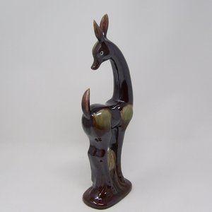 Vintage Tall Thin Art Deco Style Deer Figure Statue Brown Drip Glaze 12 3/4" H x