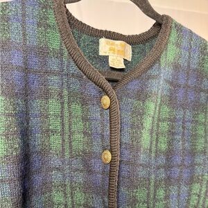 Vintage Tally Ho 100% Wool Plaid Cardigan Sweater in Navy Green