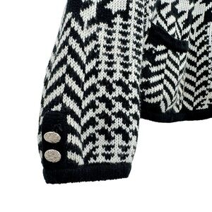 Vintage Tally Ho Boxy Cardigan Sweater Black White Houndstooth Chevron Buttons M