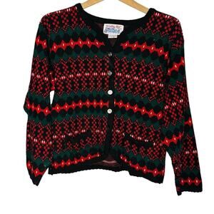 Vintage Tally Ho Christmas Red Long Sleeve Button Front Cardigan Size Small