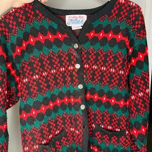 Vintage Tally Ho Christmas Red Long Sleeve Button Front Cardigan Size M