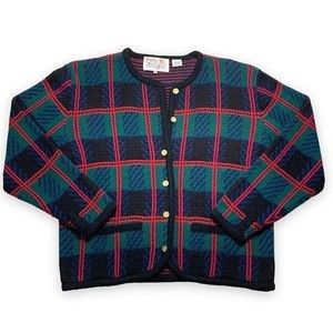 Vintage Tally Ho Plaid Knit Cardigan Sweater