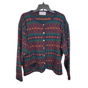 Vintage Tally Ho Red Geometric Knit Preppy Cardigan Sweater Women's Size 2X-3X / 52" chest;