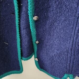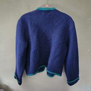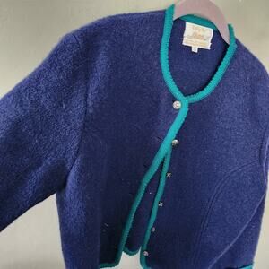 Vintage Tally Ho Royal Blue green gold boiled wool sweater coat cardigan women