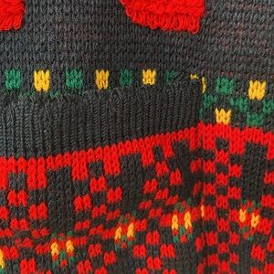 Wool sweater in great preowned condition. Only flaw I see is on the dog on the right side of the photo he has a little less fur than the other. You can see better in the photo and video. Otherwise excellent! Really cute sweater for holidays!