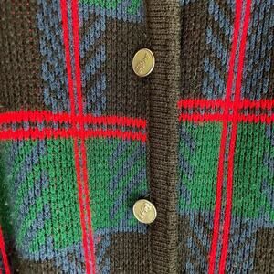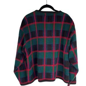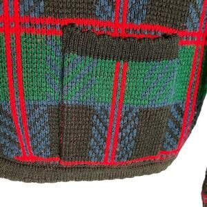 Vintage Tally Ho tartan plaid button front cardigan sweater size XL