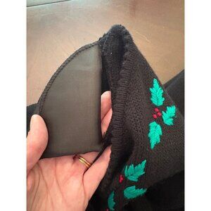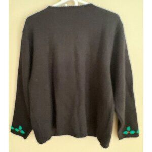 Vintage Tally-Ho Black Holly Embroidered Christmas Cardigan Sweater Women's XL