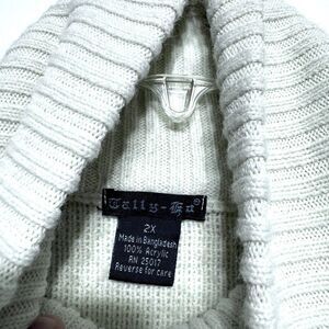 Vintage Tally-Ho Cream Thick Knit Long Sleeve Zip Up Front Cardigan Sweater 2X
