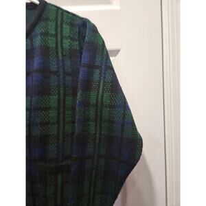 Vintage Tally-Ho Green Blue Plaid Cardigan Sweater Acrylic Size PP S 0-2