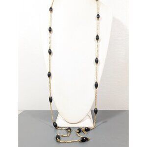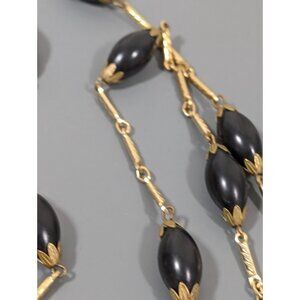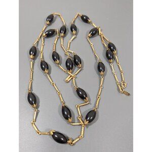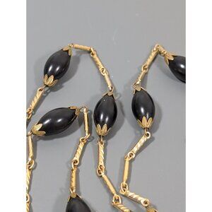 Vintage Tammey Jewels Black Bead Gold Tone Long Necklace 54" Oval Beads Linked