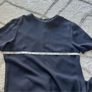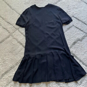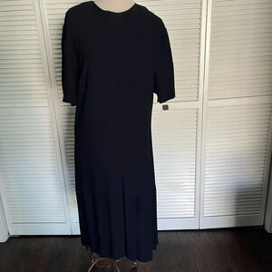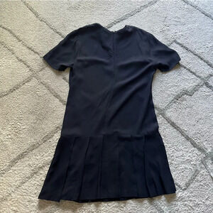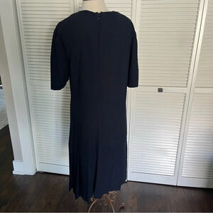 Vintage Tamotsu navy blue classy simple chic midi sheath dress pleated 1X