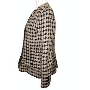 Vintage Tan Black Houndstooth Wool V-Neck Button Down Blazer